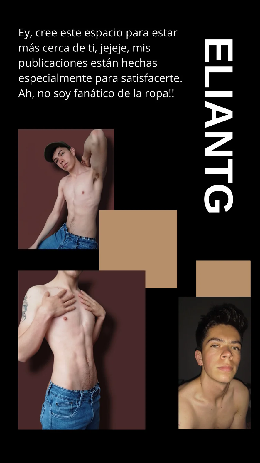 ¡Ey!, cree este espacio para estar más cerca de ti, hehehehe, mis publicaciones están hechas especialmente para satisfacerte. Ah, no soy fanático de la ropa!!